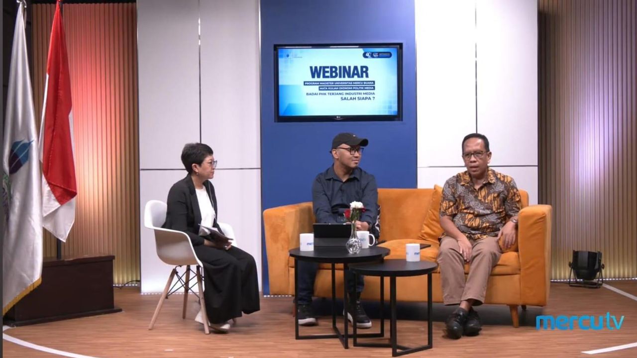 Dalam webinar yang disiarkan secara live di Youtube Mercu TV itu, turut hadir Ketua Asosiasi Sutradara Indonesia sekaligus praktisi media, Agung Cahyono dan Lektor Kepala Fakultas Ilmu Komunikasi Universitas Mercu Buana, Assoc. Prof. Dr. Afdal Makkuraga Putra, M.Si, dan Ketua Program Studi Magister Universitas Mercu Buana, Assoc. Prof. Dr. Heri Budianto, M.Si.